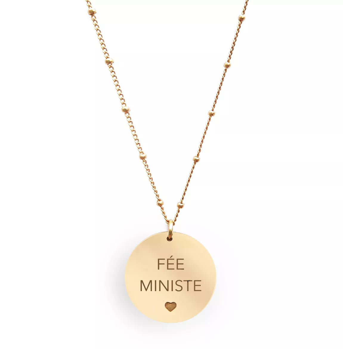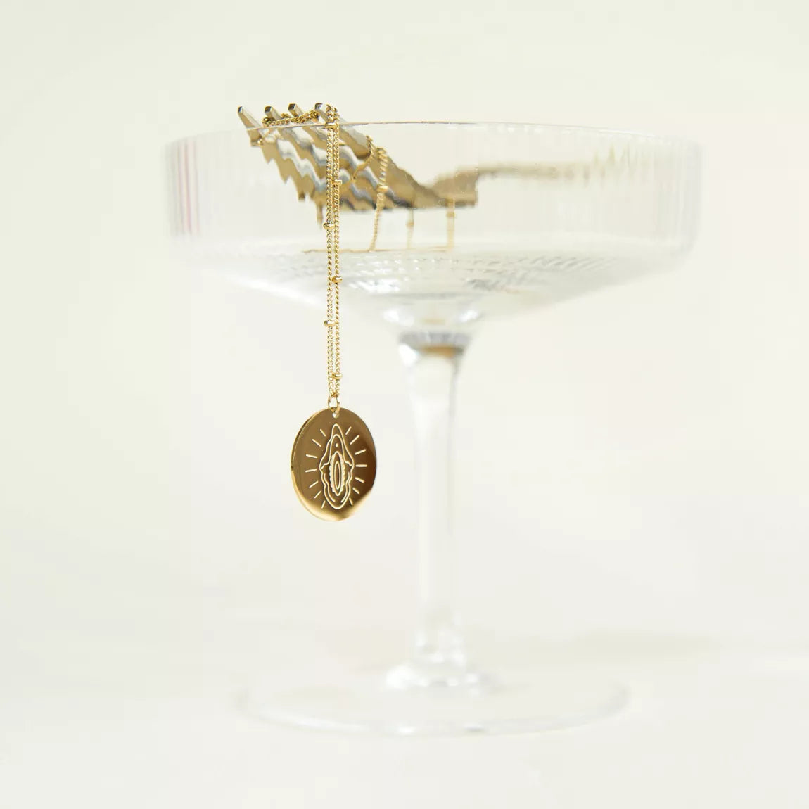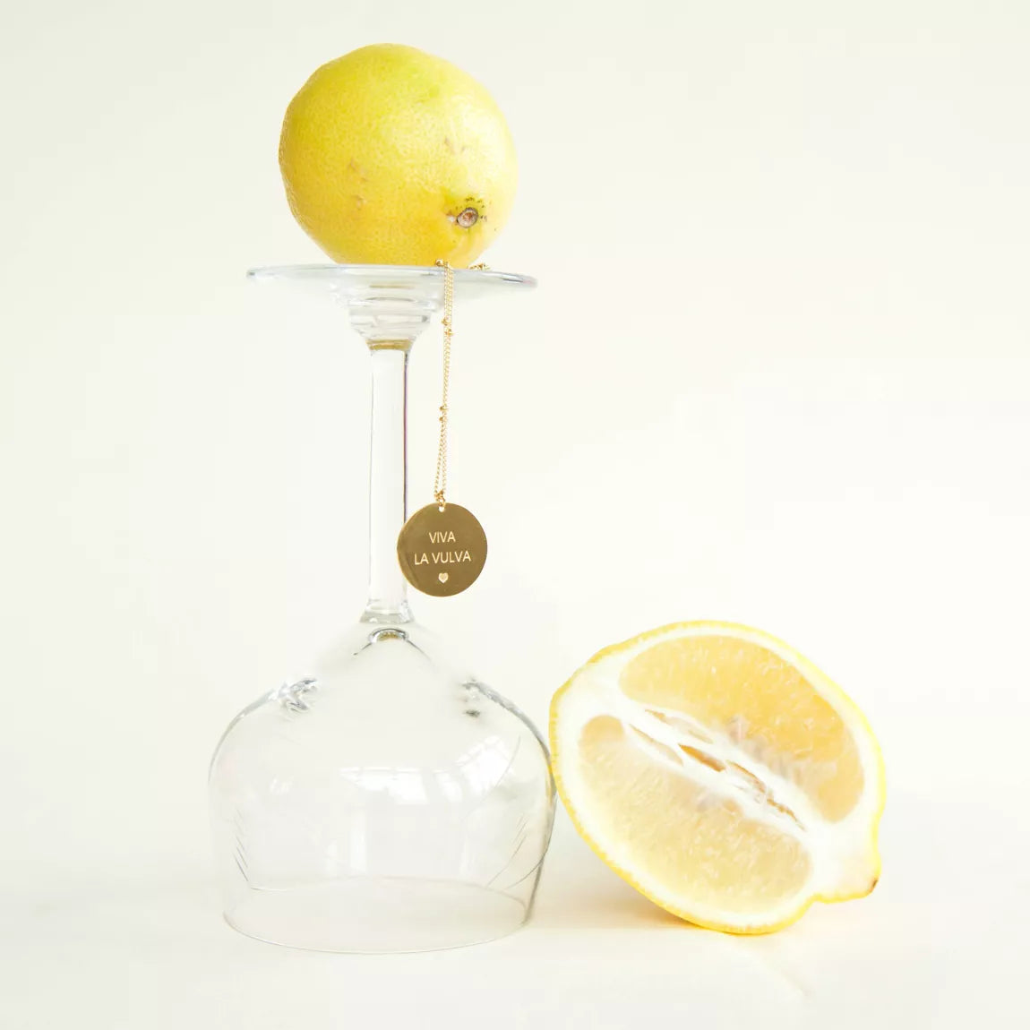 Médaille gravée recto-verso: RECTO: un message / VERSO: une illustration vulve. Ce bijou empreinte le raffinement de la médaille classique pour revendiquer une opinion libre, joyeuse et féministe.