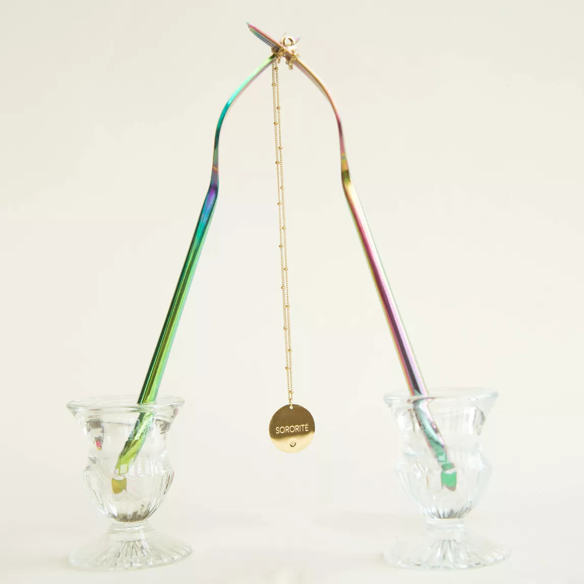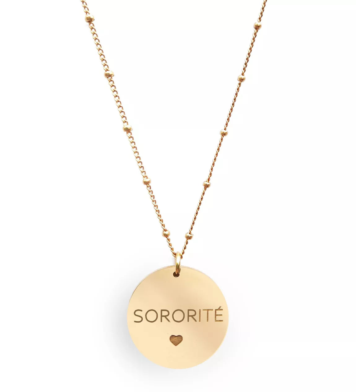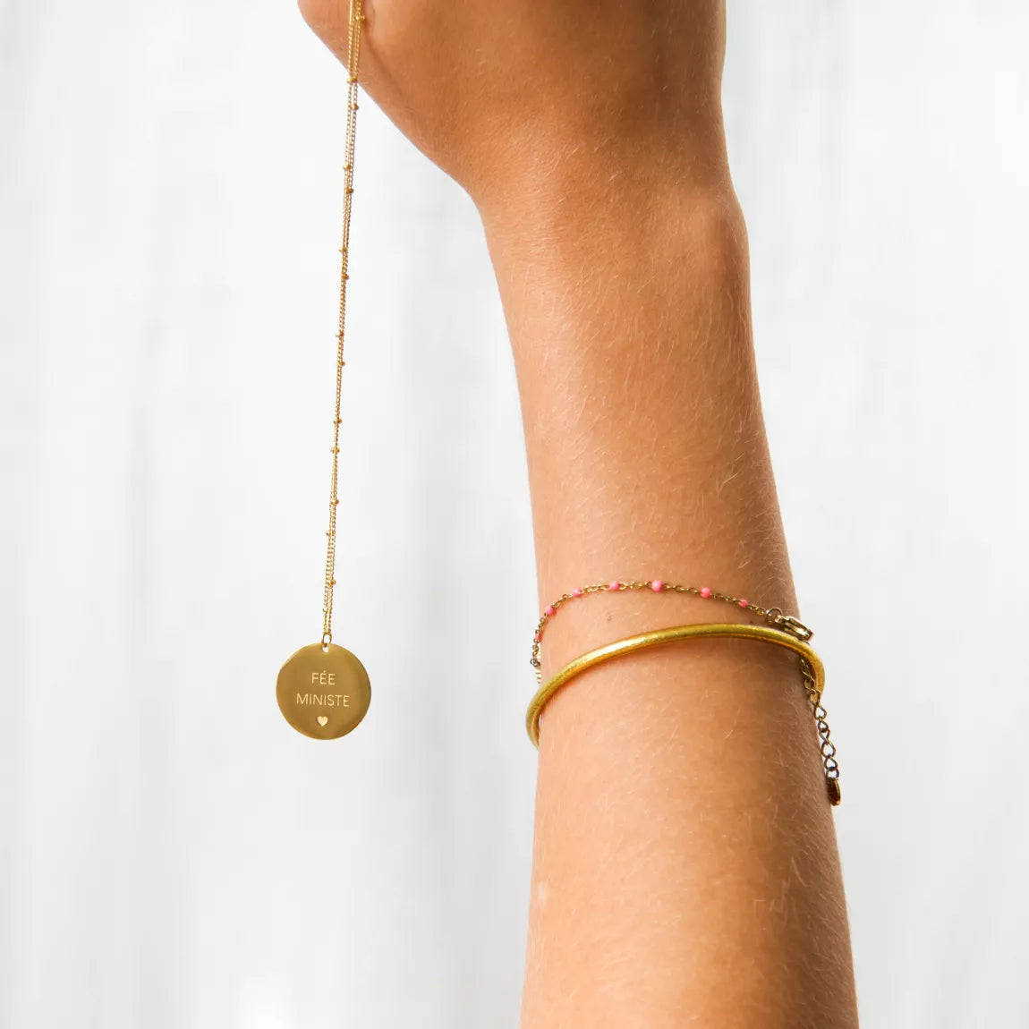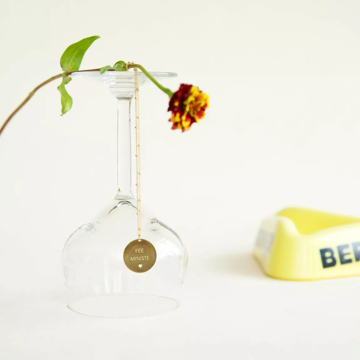 Médaille gravée recto-verso: RECTO: un message / VERSO: une illustration vulve. Ce bijou empreinte le raffinement de la médaille classique pour revendiquer une opinion libre, joyeuse et féministe.