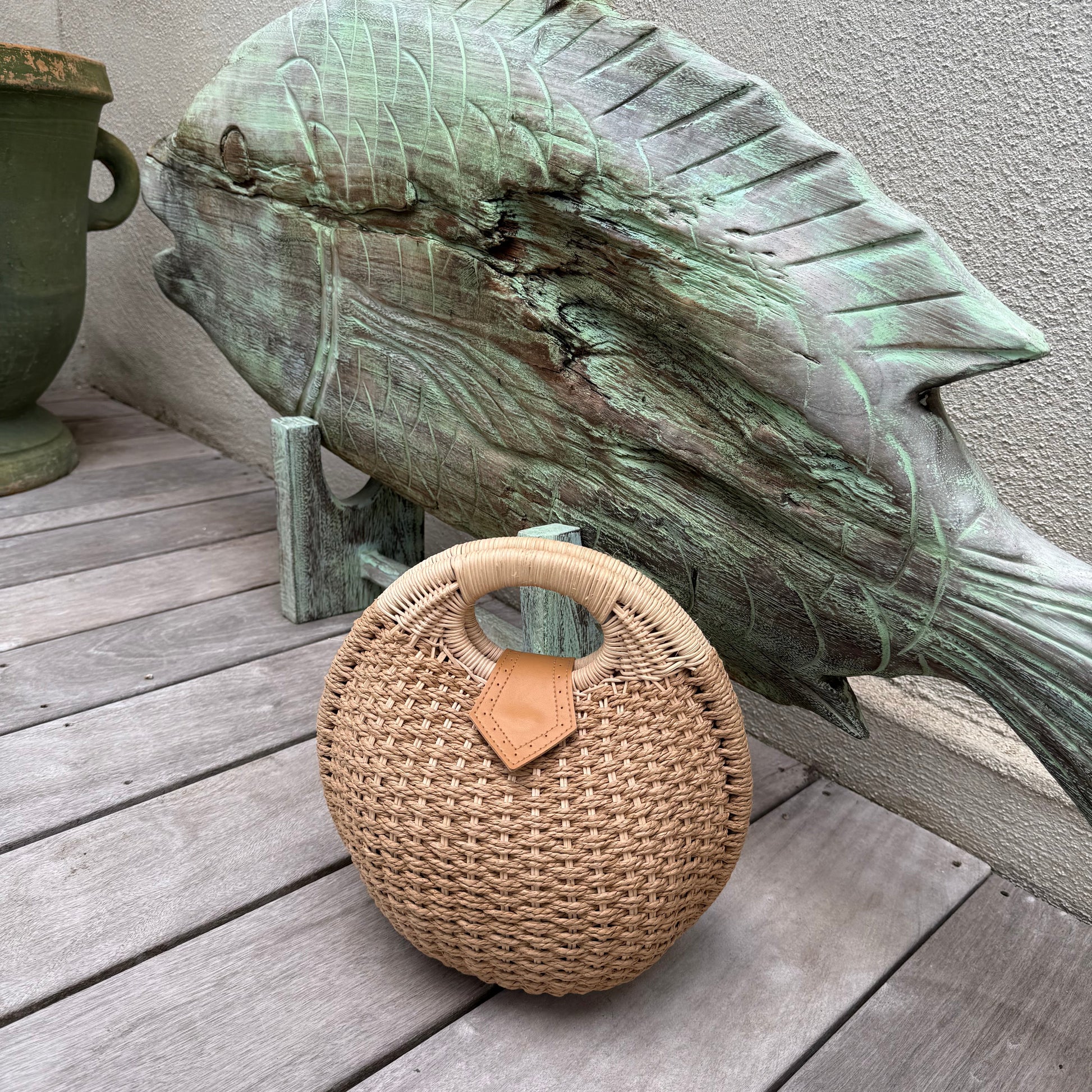 Quand L’authenticité rencontre l’élégance. Laisse-toi séduire par ce sac en raphia entièrement tressé à la main par des artisanes kenyanes, gardiennes d’un savoir-faire ancestral. Sa forme boule iconique, à la fois moderne et naturelle, apporte une touche solaire à n’importe quelle tenue — du look casual chic à l’allure estivale la plus stylée.